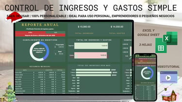 Control de Ingresos y Gastos Simple Google sheets y Excel Modo navideño