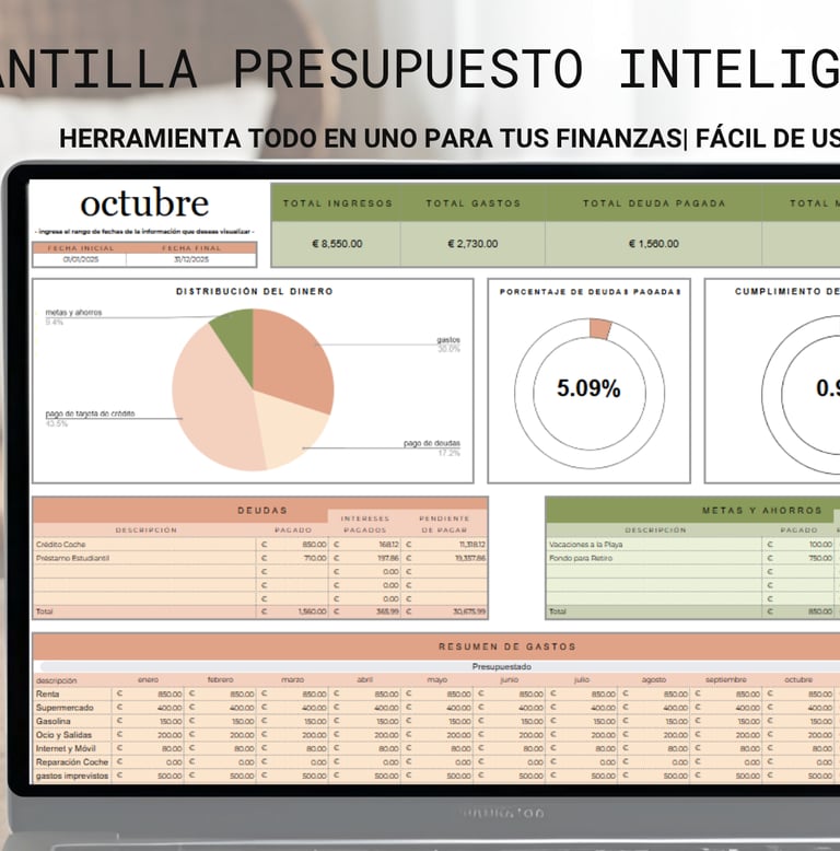 Esta herramienta te ayudará a registrar tus ingresos, categorizar tus gastos y visualizar tus metas de ahorro de manera sencilla y efectiva.